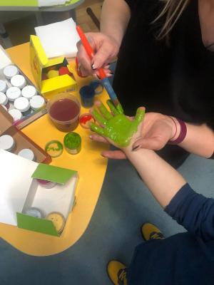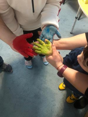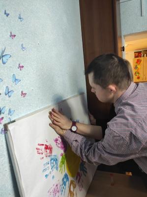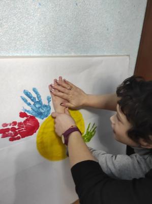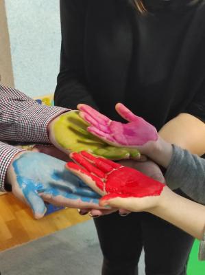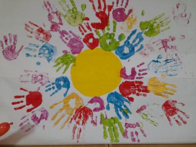Після пізнавальної частини відбулася творча робота. У центрі великого аркуша з’явилося жовте коло – мов сонце над спільним домом. Навколо нього розквітли різнокольорові відбитки долонь. Кожен відбиток – унікальний, як людина, що його залишила. Разом вони утворили цілісну композицію, де немає головних і другорядних, де кожен колір важливий, кожна присутність відчутна.
