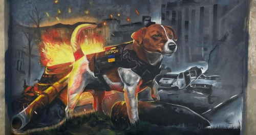 У червні 2022 року в Ужгороді на огорожі стадіону «Авангард» з'явився мурал із зображенням пса Патрона. Авторка роботи, місцева художниця Катерина Туз, виконала стінопис у стилі фотореалізму, зобразивши Патрона в бронежилеті на тлі палаючого ворожого танка. Цей мурал став частиною серії патріотичних зображень, які прикрашають аварійну огорожу стадіону.