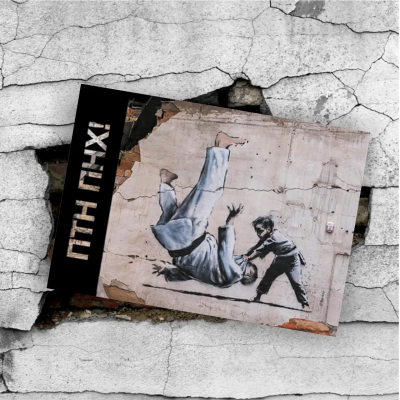 На марці зображено одне з семи графіті всесвітньо відомого вуличного художника Бенксі, створених ним анонімно в Україні у 2022 році. Графіті зображує маленького хлопчика, який відправляє в нокаут дорослого дзюдоїста. Цей малюнок був нанесений на стіну зруйнованого будинку у смт Бородянка Київської області.